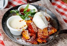 200 г • Простой и любимый десерт из детства. Подается с шариком мороженого
